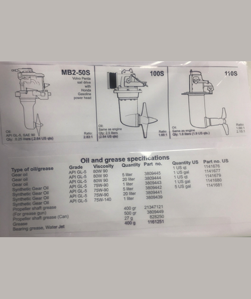 Zie de laatste product foto voor het overzicht van uw type Volvo Penta saildrive met de daarbij behorende type olie en hoeveelheid.